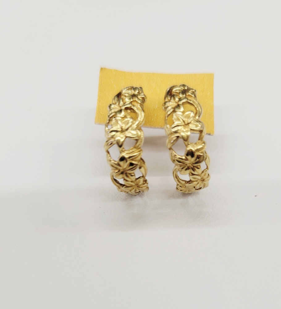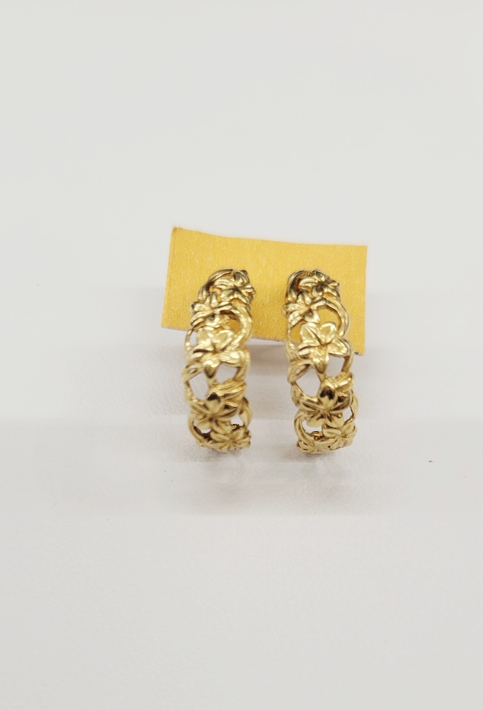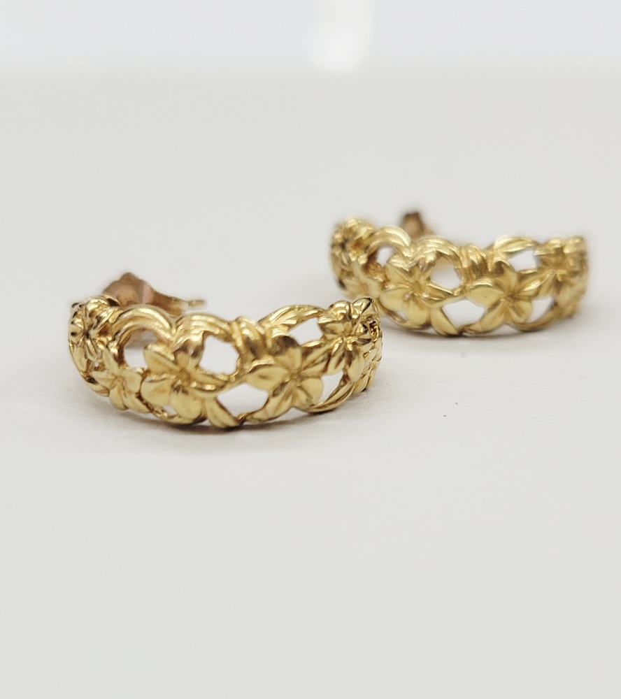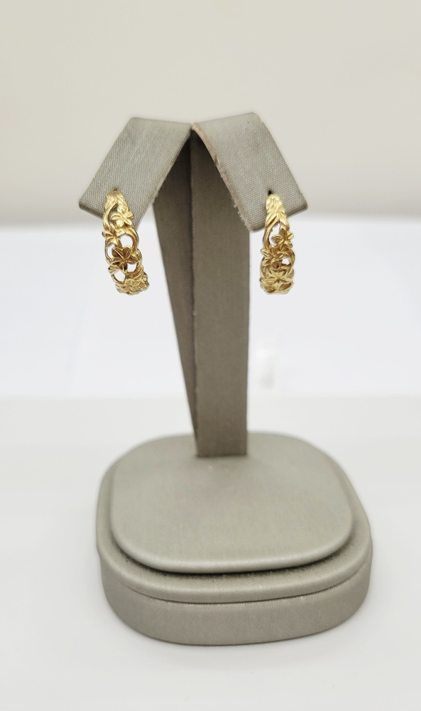 Adorable C Hoop Floral Design Earrings - Stud Closure - 14kt Yellow Gold
