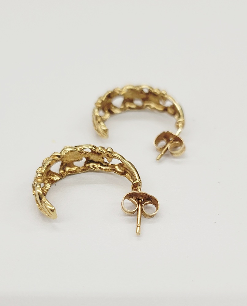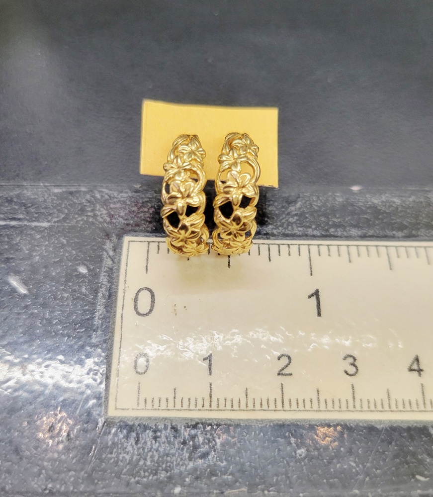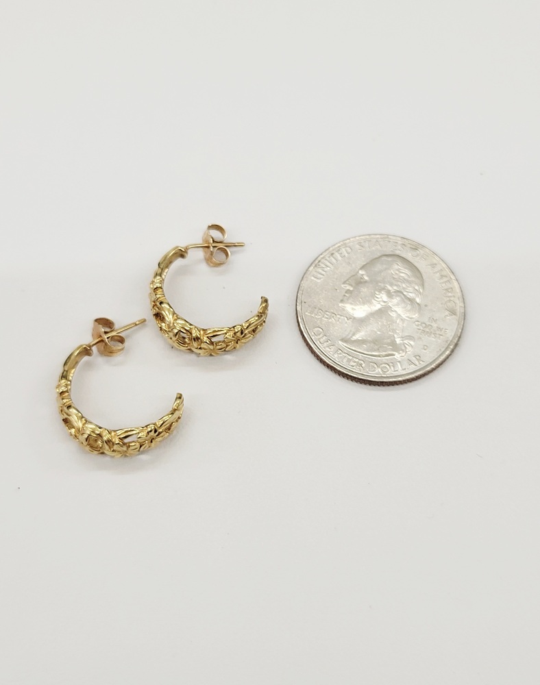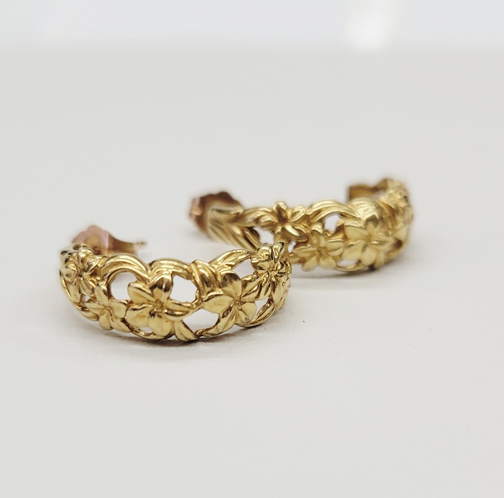 Adorable C Hoop Floral Design Earrings - Stud Closure - 14kt Yellow Gold