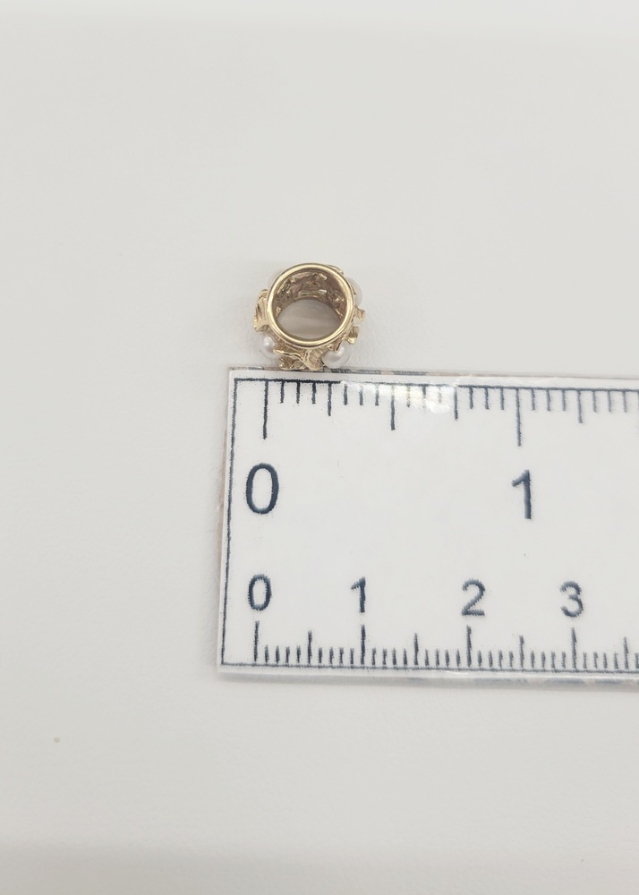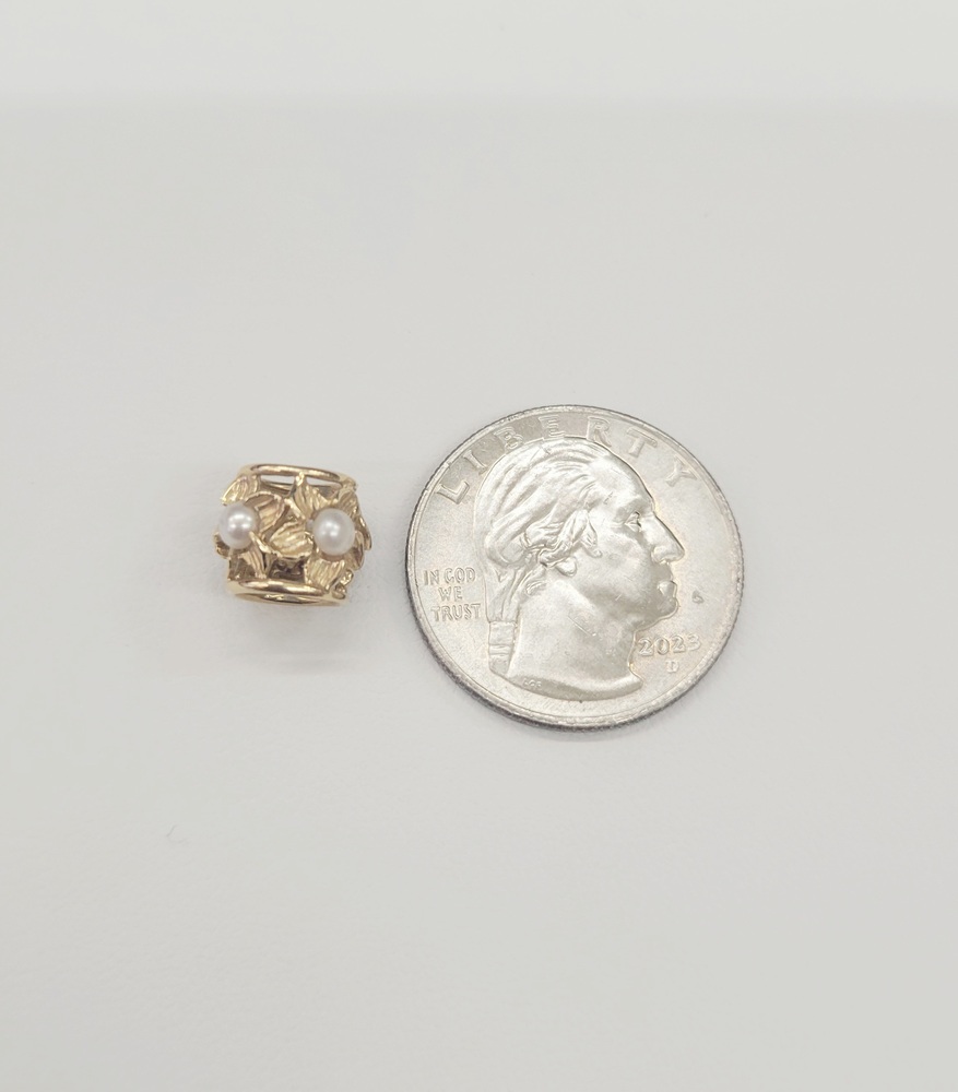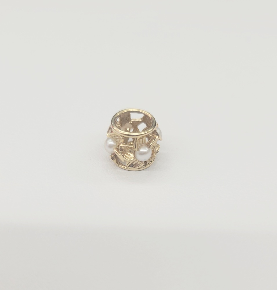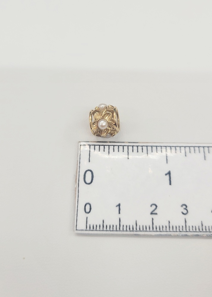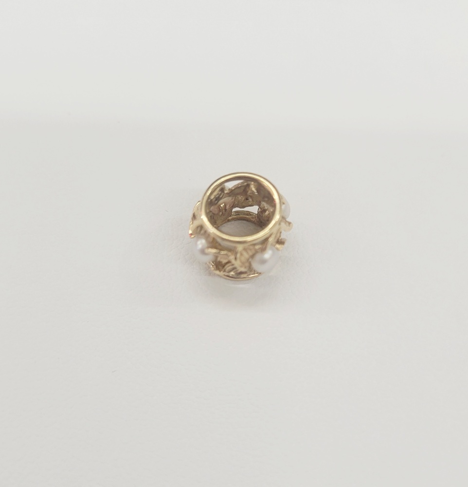 Cute Simple Flower Barrel Pendant with Small White Pearls - 14kt Yellow Gold