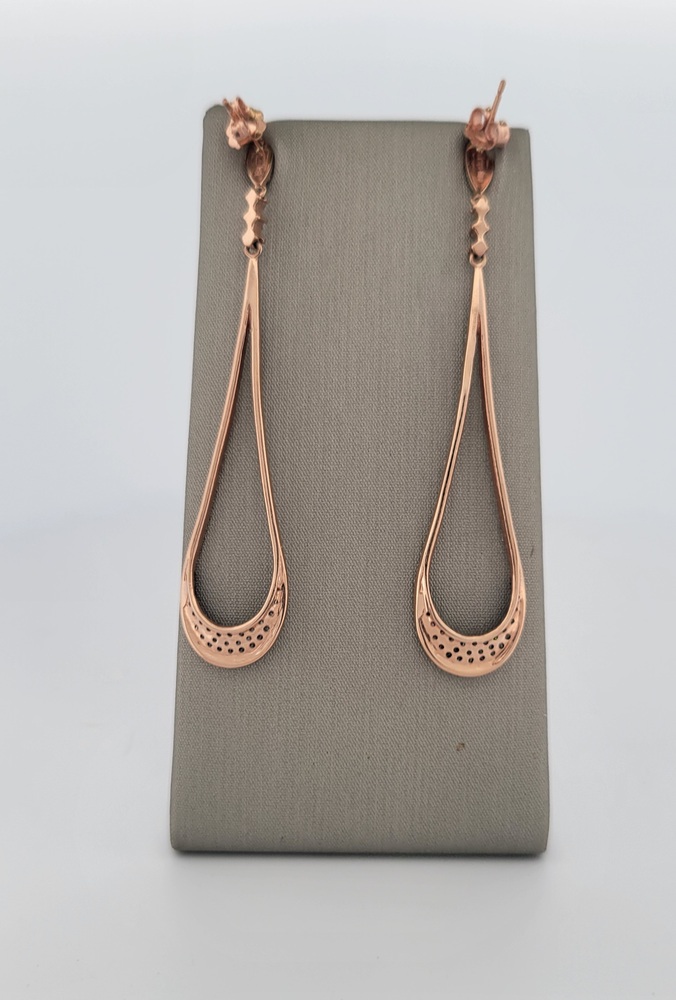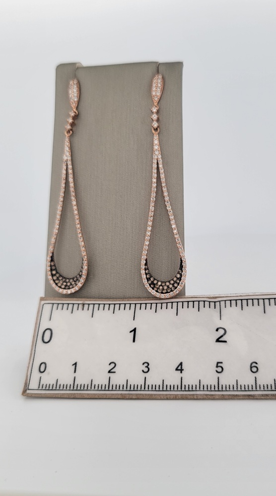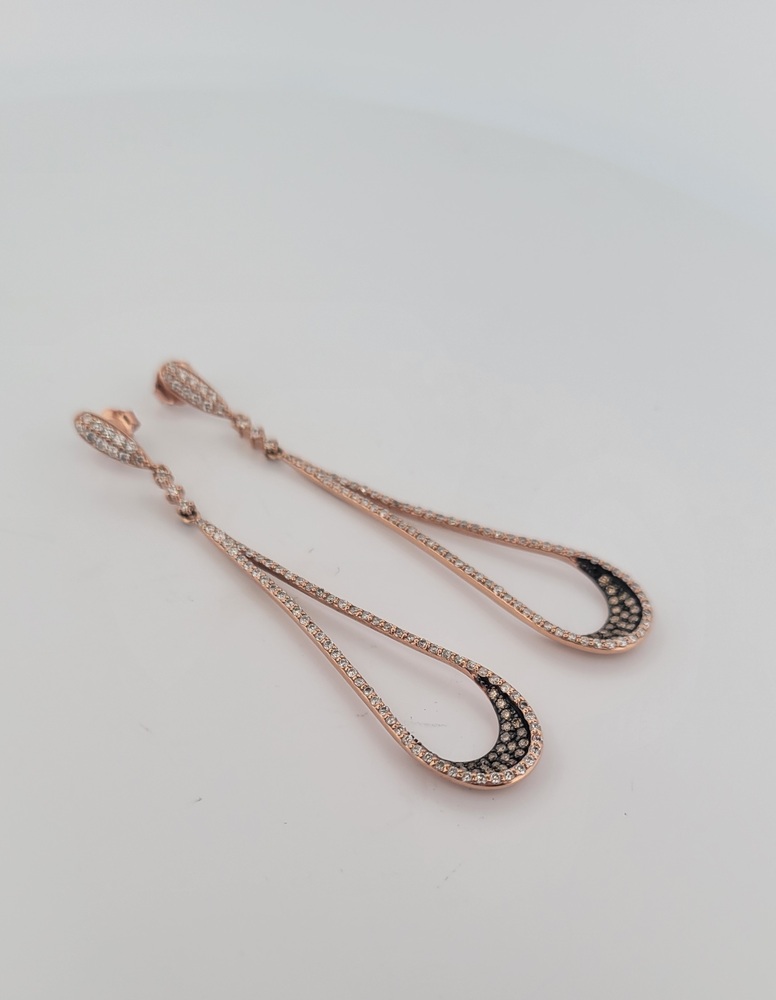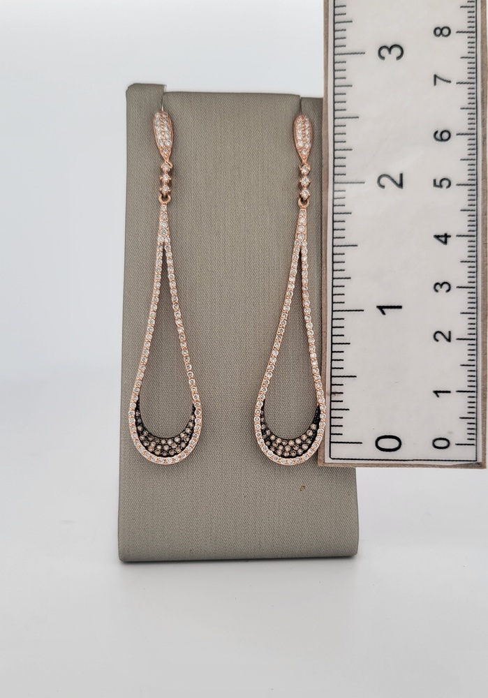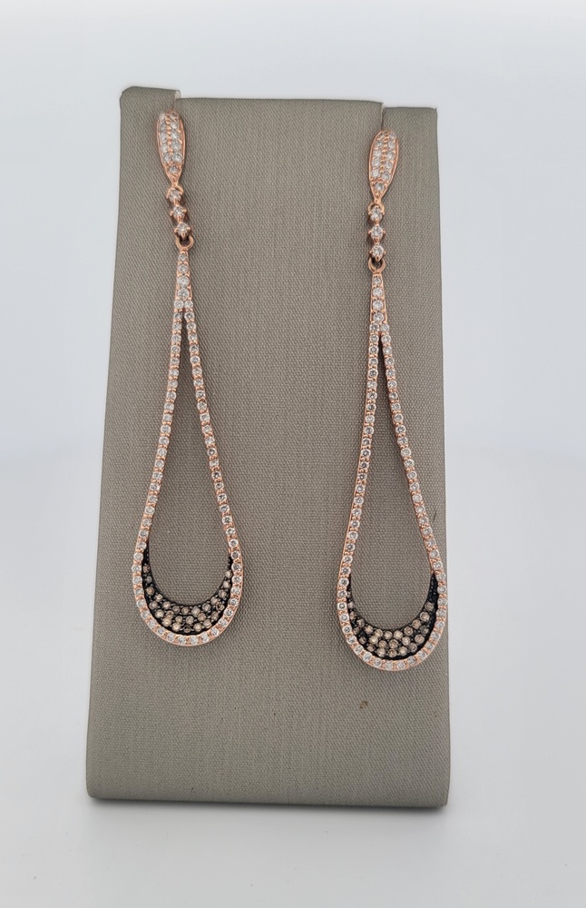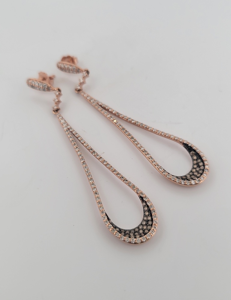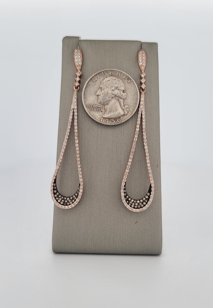 Effy Jewelry - Expresso and White Diamond Drop Earrings - Post Stud Closure - 14kt Rose Gold