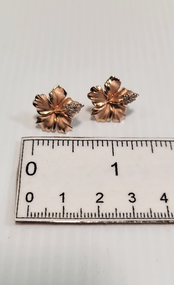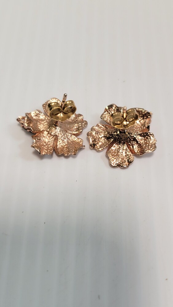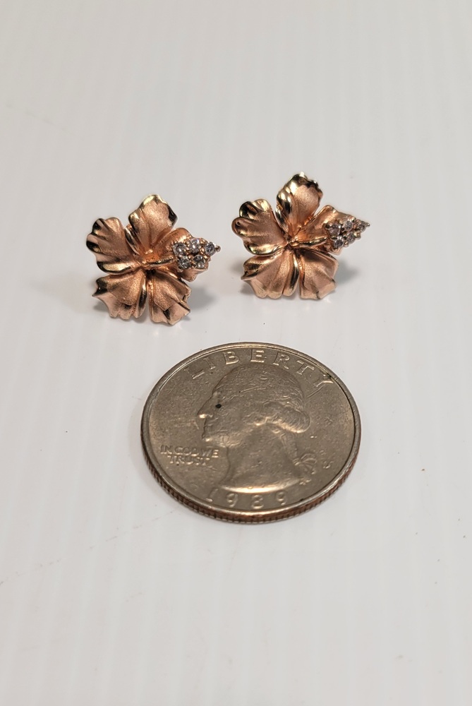 Hawaiian Hibicus Flower Stud Earrings with Melee Diamonds - 14kt Rose Gold