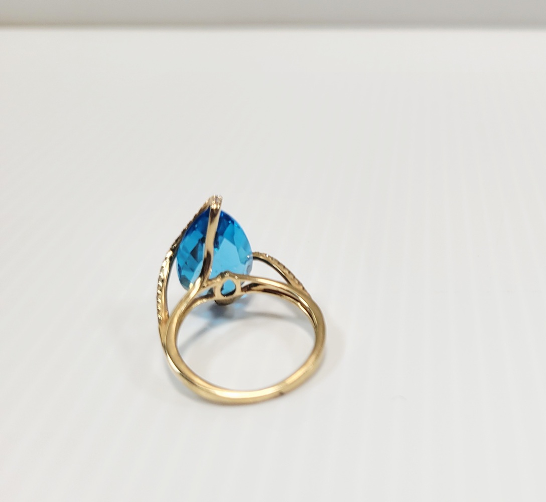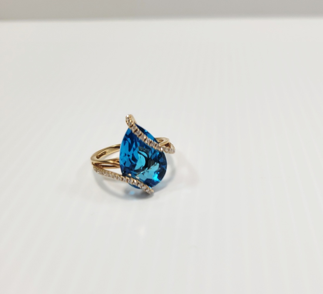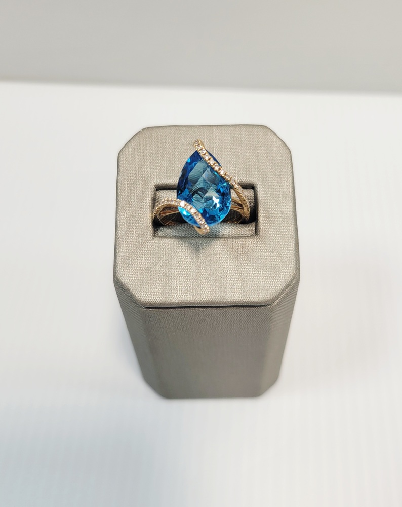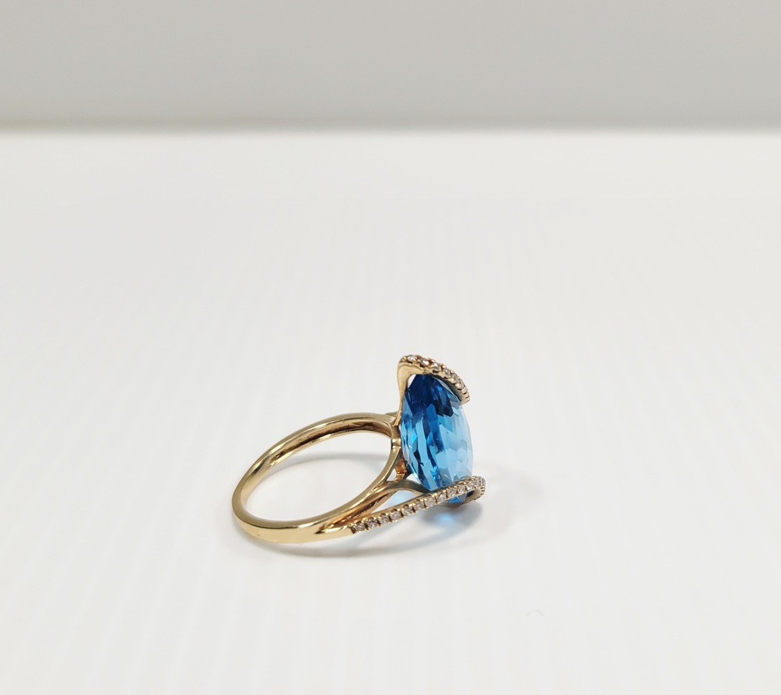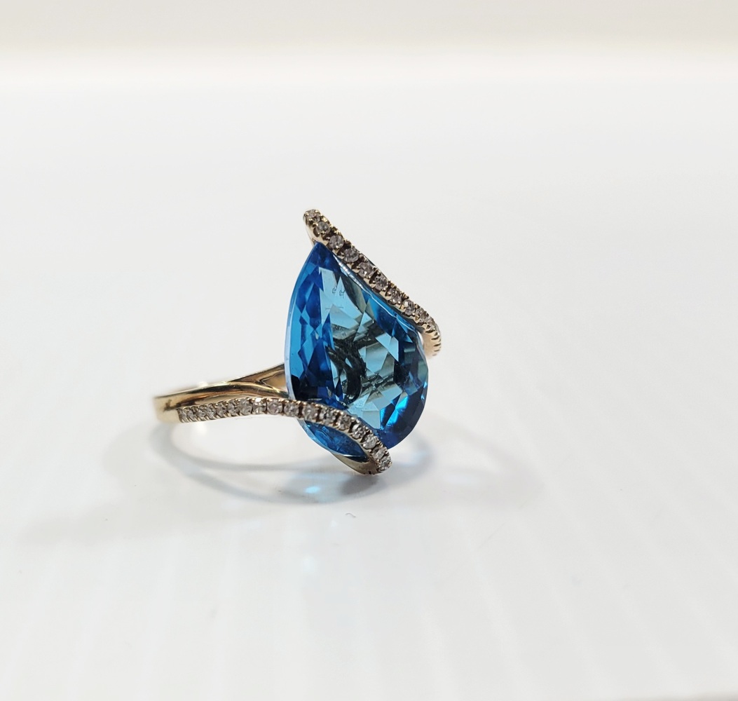 Ocean Blue Pear-Shaped Topaz Gemstone with Diamond Accents Ring, 14kt Yellow Gold