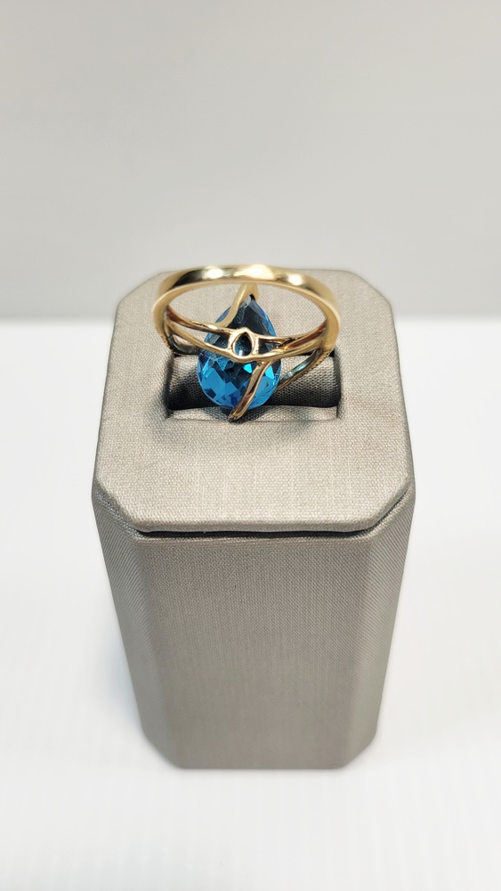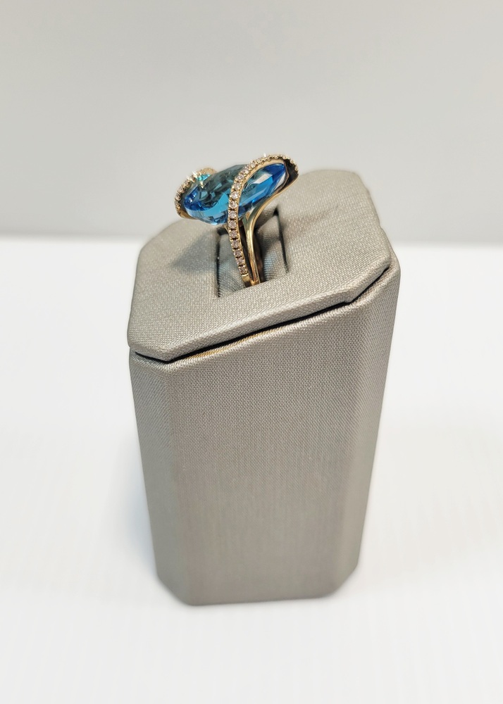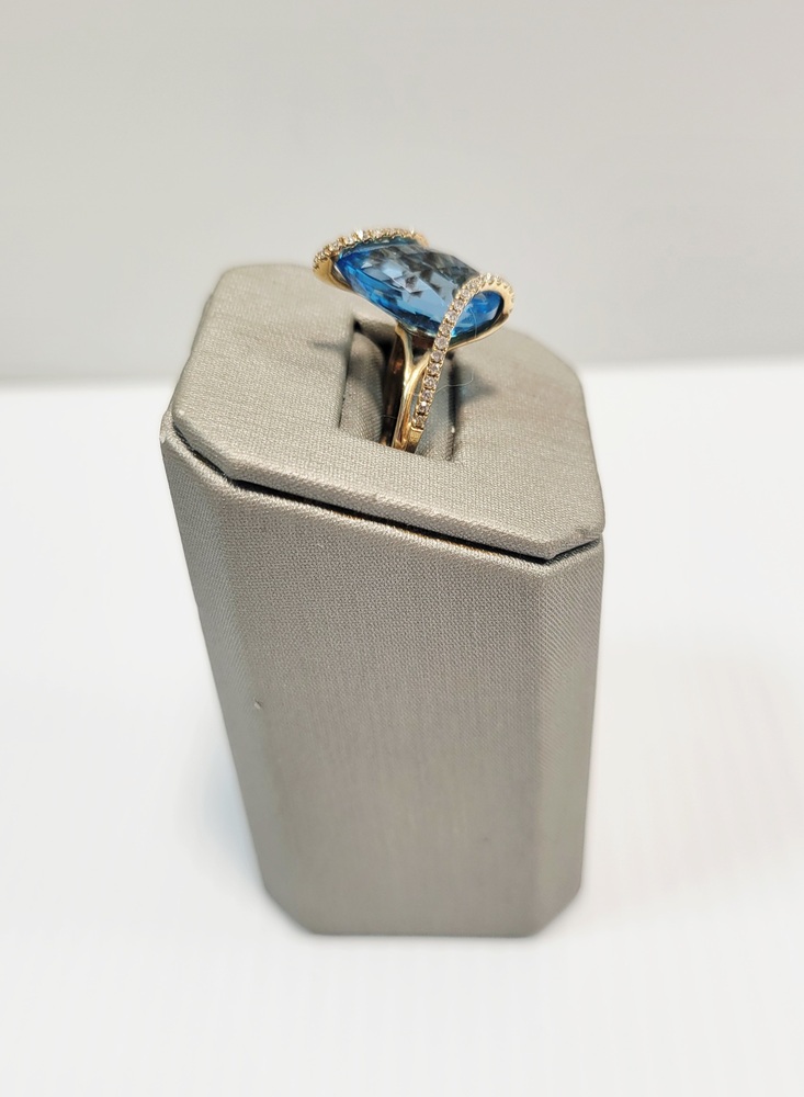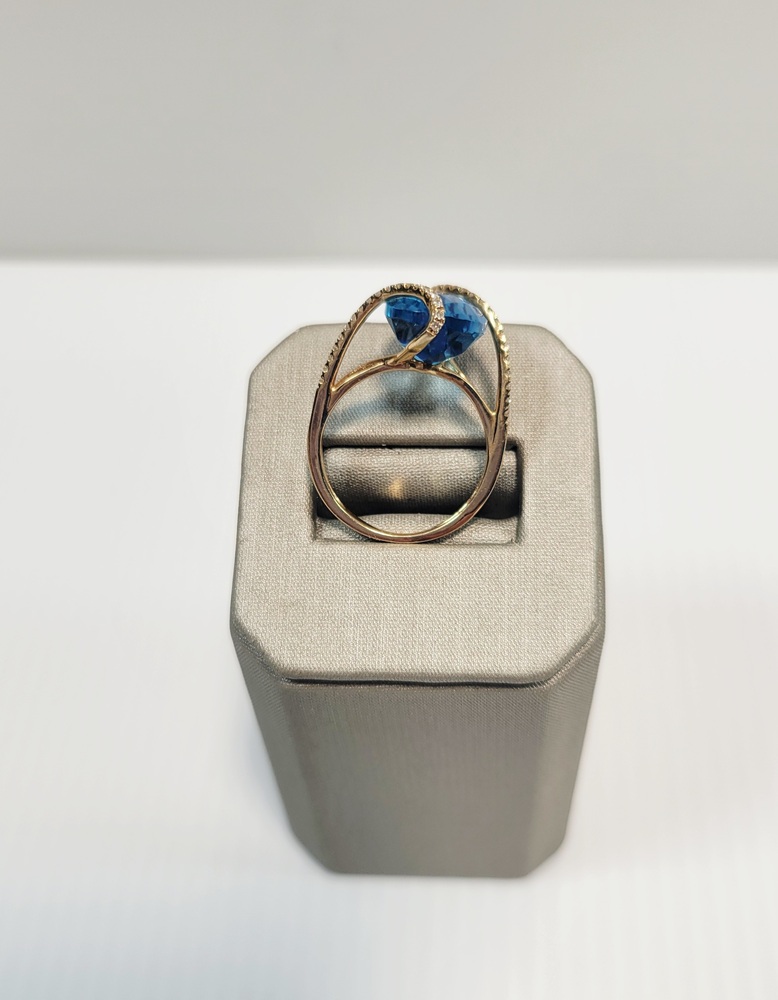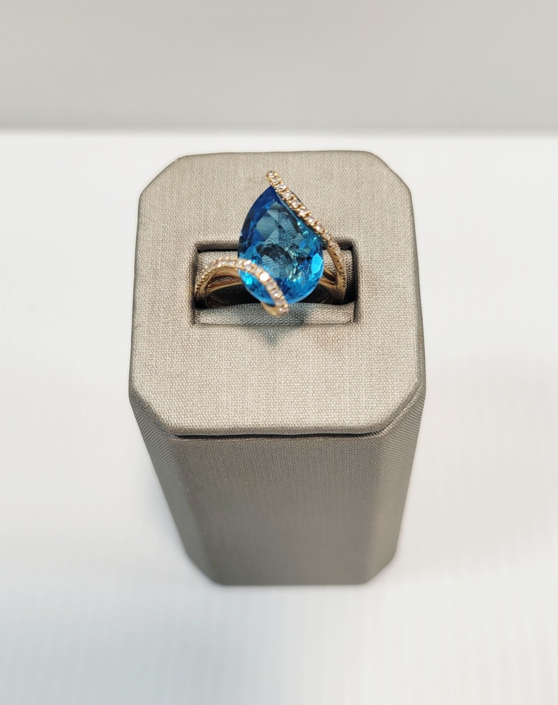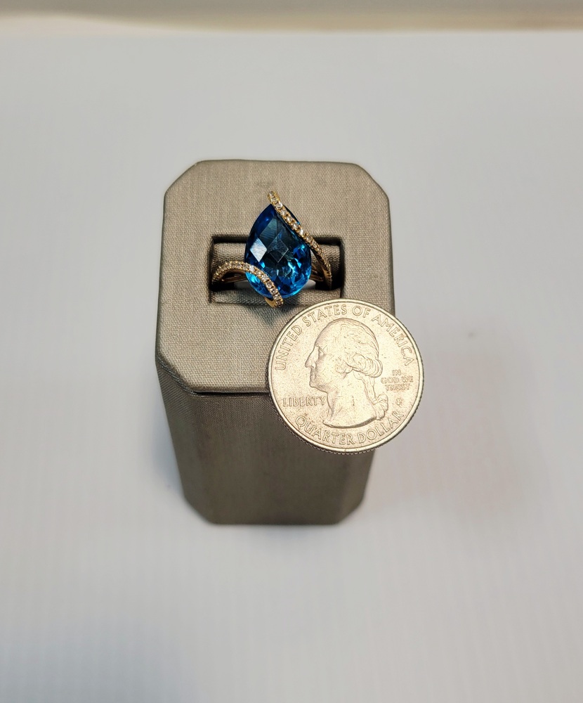 Ocean Blue Pear-Shaped Topaz Gemstone with Diamond Accents Ring, 14kt Yellow Gold