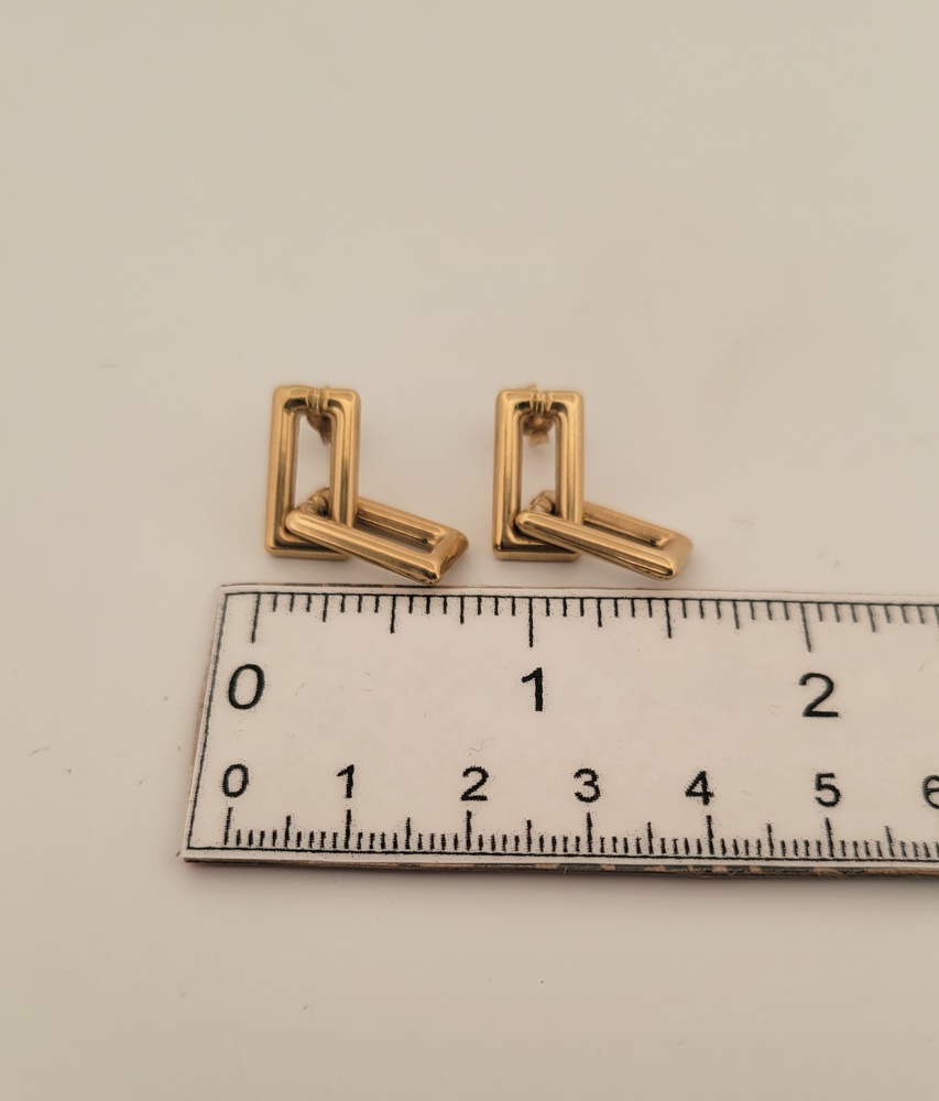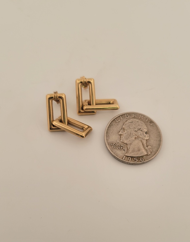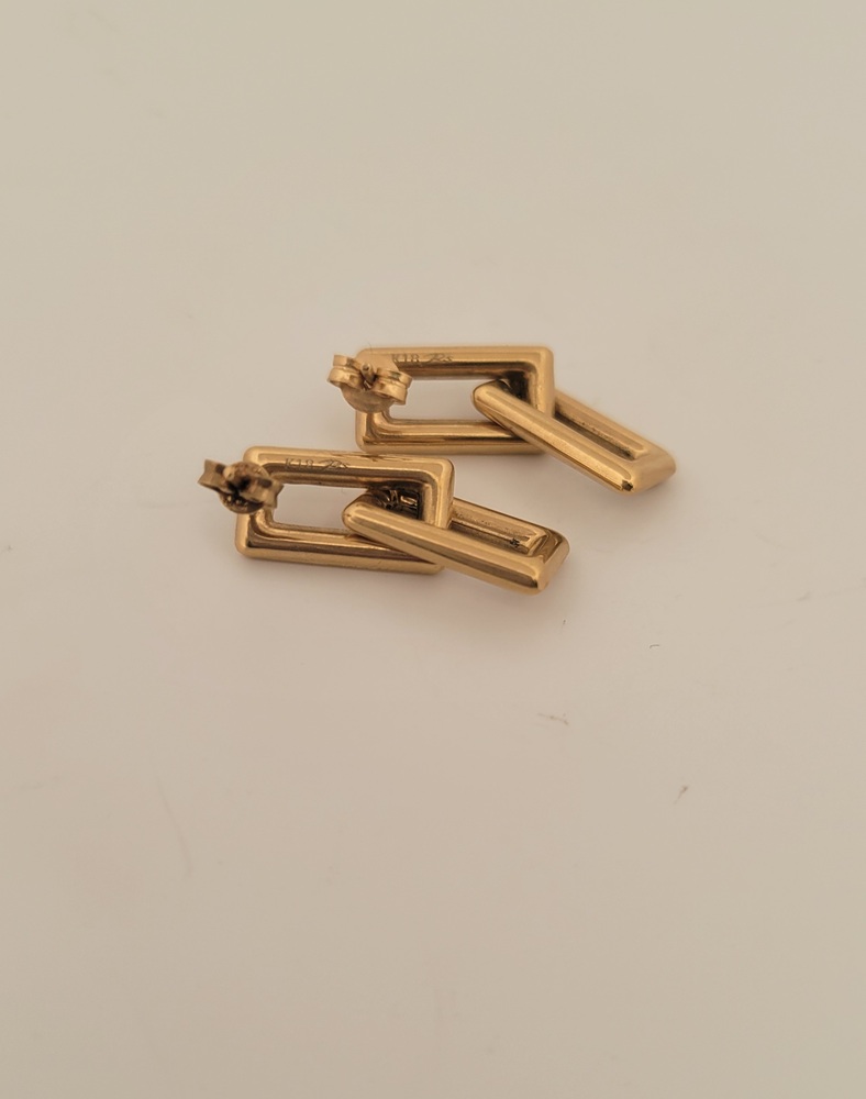Simple Rectangle Drop Earrings - Post Backing - 18kt Yellow Gold