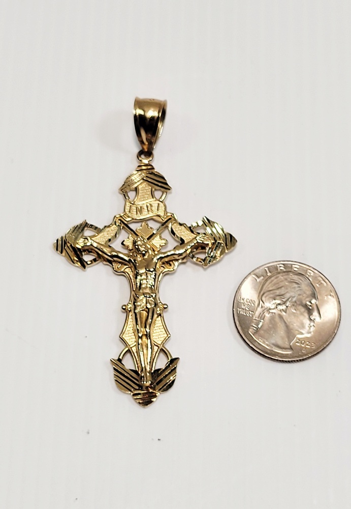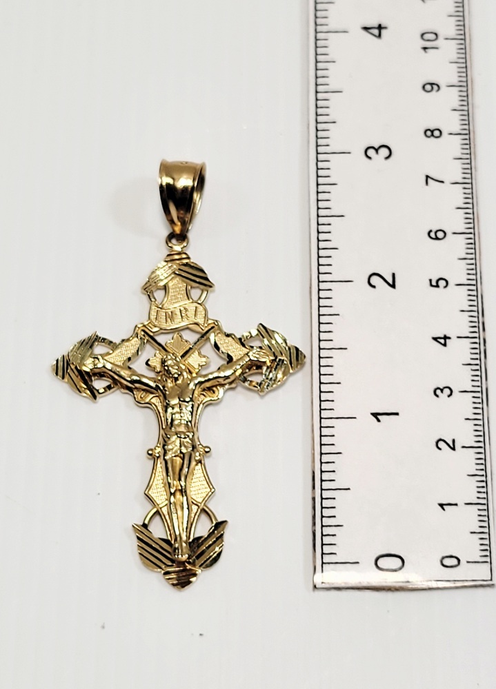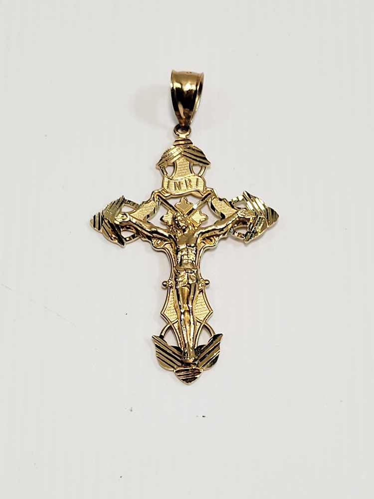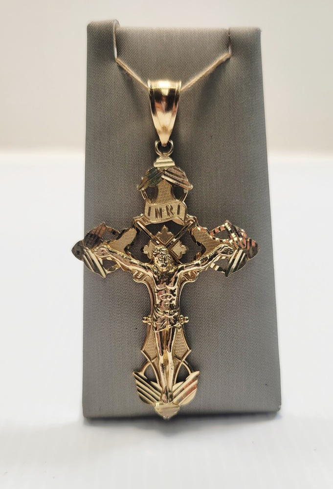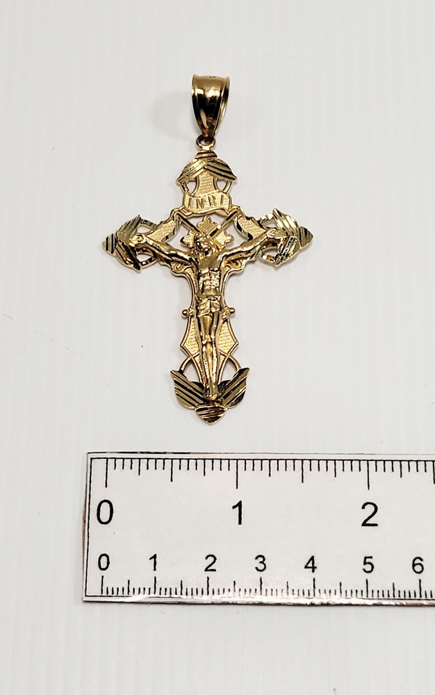 INRI Crucifix Cross Pendant with Bale - 14kt Yellow Gold