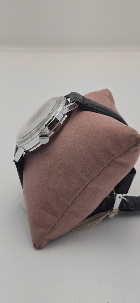 Watch In Good Condition With Wear On Black Leather Strap Indictive Of Its Age.